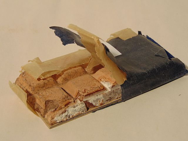 Chocolate from British military rations World War II, handed to a Dutch civilian by a British soldier during the liberation of the Netherlands and preserved as a precious gift. Photographed in the collection of the National Liberation Museum 1944-1945, the Netherlands.